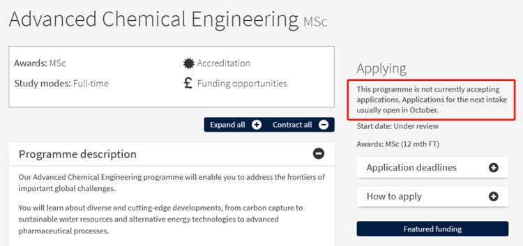 帝國理工商學院在8月底就已經(jīng)率先開放碩士網(wǎng)申,其他學院在10月2日開放碩士網(wǎng)申通道。
