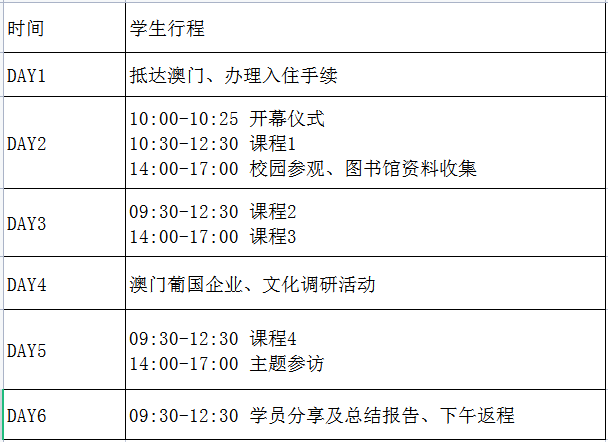 *上述行程、課程、參訪安排或會(huì)受不確定因素影響而作出調(diào)整(如場(chǎng)地臨時(shí)關(guān)閉、惡劣天氣等),澳門大學(xué)將保留最終決定權(quán)。